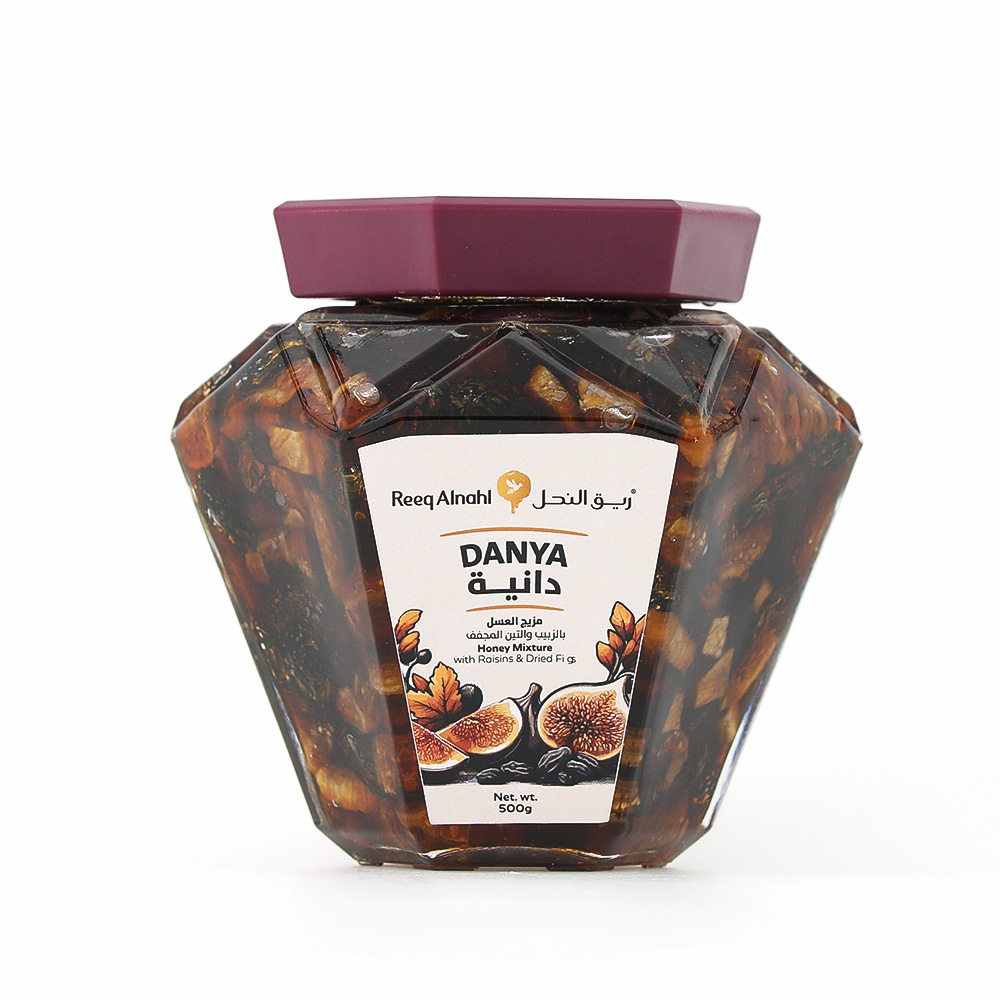 DANIA Category: Honey Mixtures Reeq Alnahl Description More Products Product Description Dania Honey is a new and exclusive product from Reeq Al Nahl, a unique blend combining the authenticity of honey, the freshness of figs, and the deliciousness of raisins. Read more Honey Derivatives Jordanian Royal Jelly 20 grams Read more Honey Kashmiri Sidr Honey